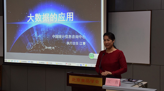 中国统计信息中心执行主任江青做《大数据的应用》专题报告。她围绕互联网+大数据带来的时代冲击、大数据的研究应用、食品安全大数据应用等方面,畅谈了如何认识大数据、大数据时代到来的背景、今天的大数据意味着什么、大数据透视中国食品安全形象等。